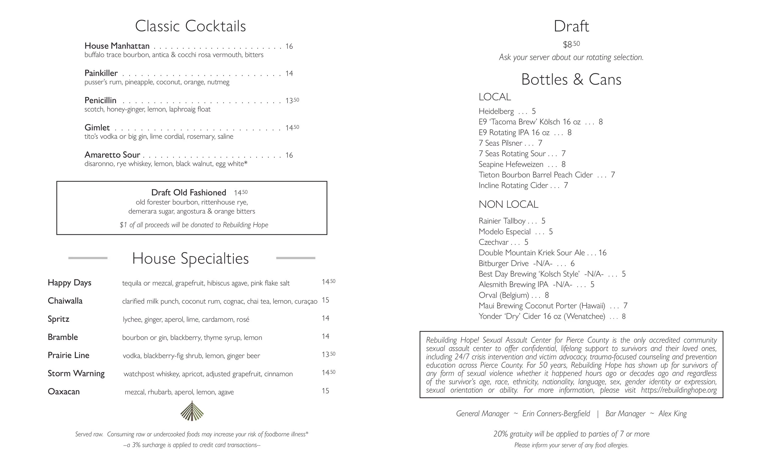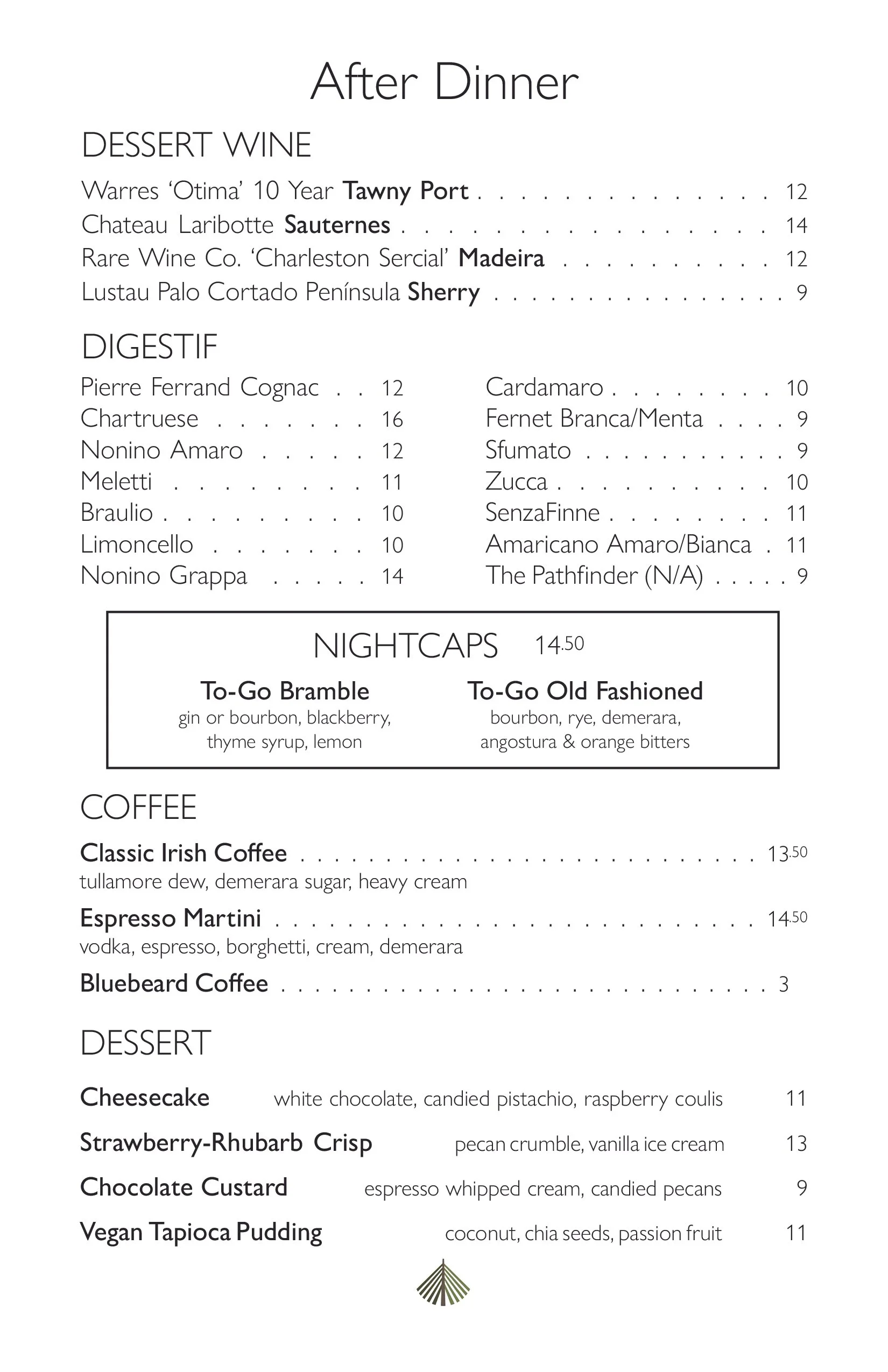 We have a $15 corkage fee and there is a $15 dessert fee